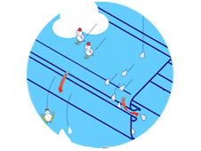 | 「強風でといが飛んじゃったー」 | 『雨落ちが気になって夜眠れないわ」 |